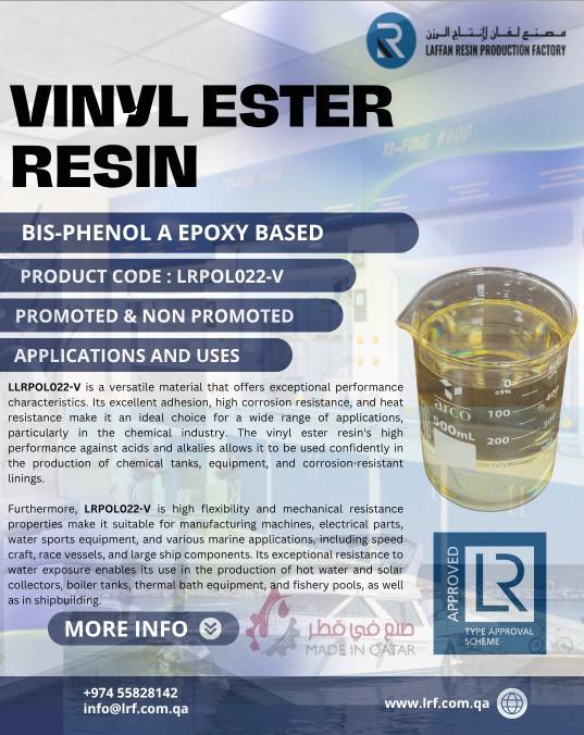Polyester laminating resin, also known as fiberglass resin, is the most commonly used resin in the industry . It is used in a wide variety of projects including boats, car bodies, kayaks, surfboards, patio decks and aircraft. It is affordable and easy to use. It has a quick cure and adds dimensional stability. Laminating resins LRF Products : LRPOL022-L600, LRPOL022-OT1500, LRPOL022-IT1500, LRPOL022- L550Laminating Resins